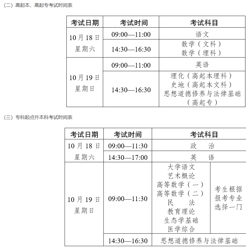 考試時間:10月18—19日。